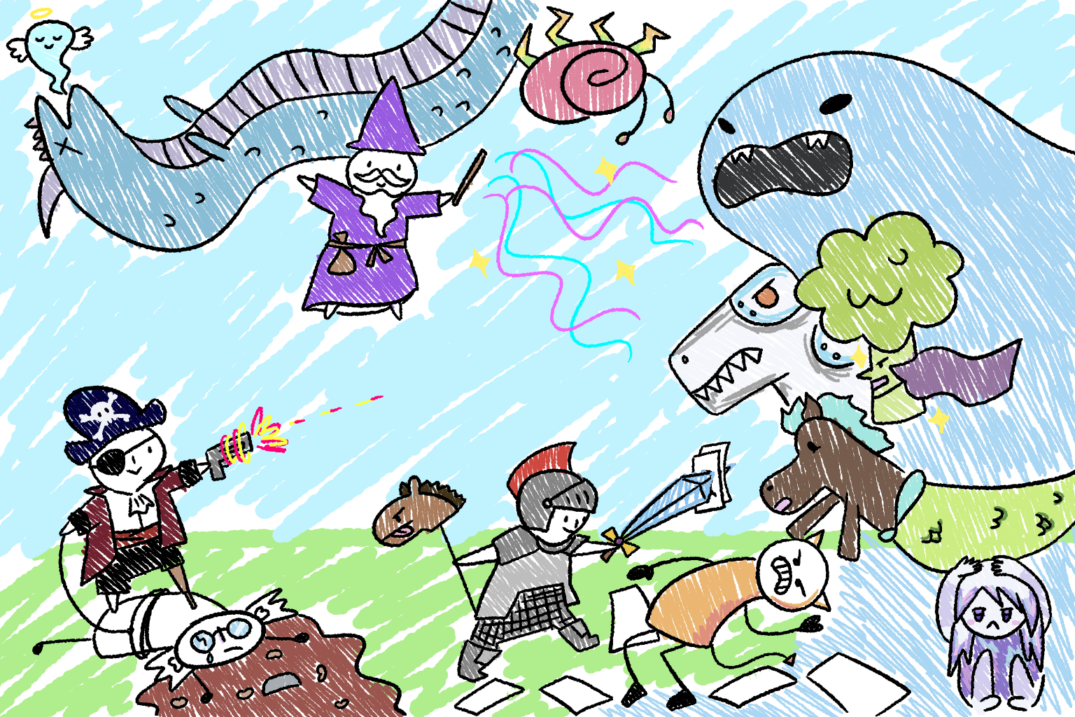 MIGHTY! is an original card game I created during fall 2020 for my Game Design Workshop class. As the project lead, I worked with classmates Melody Guo, Leo Chiu, and Michael Lu to produce a fast paced PVP game inspired by childlike imagination. Due to remote learning, MIGHTY! was made in Tabletop Simulator, and you can find its Steam Workshop page here.